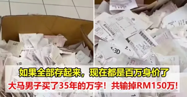 「如果全部存起來,現在都是百萬身價了!」大馬男子買了35年的萬字!共輸掉RM150萬!