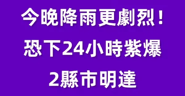 快訊/今晚降雨更劇烈! 恐下24小時紫爆「2縣市明達停班課標準!」