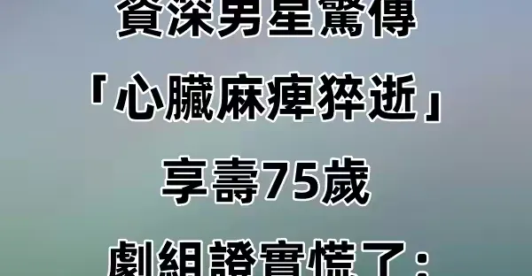 新戲才播2集!資深男星驚傳「心臟麻痹猝逝」享壽75歲 劇組證實慌了:「還在想辦法….」