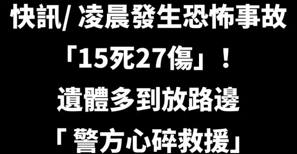 快訊/凌晨發生恐怖事故「15死27傷」!遺體多到放路邊「 警方心碎救援」!