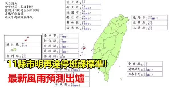 快訊/11縣市明再達停班課標準!最新風雨預測出爐