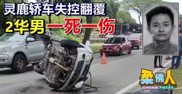 靈鹿轎車失控翻覆 2華男 一死一重傷