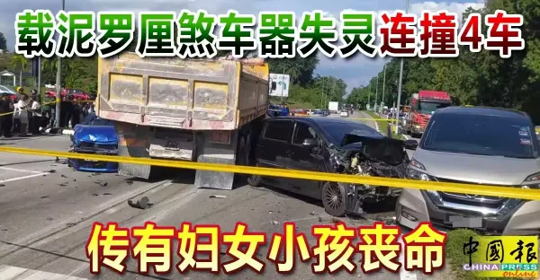 載泥羅厘剎車器失靈 連撞4車 婦女小孩喪命