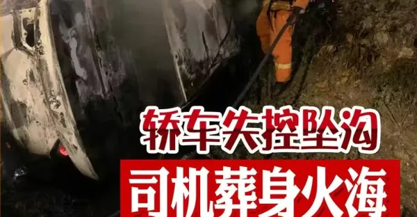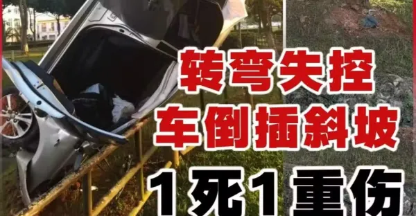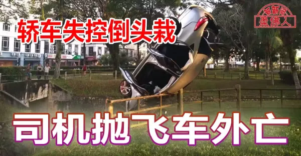 轎車失控沖入交通圈倒插斜坡 司機身亡乘客重傷