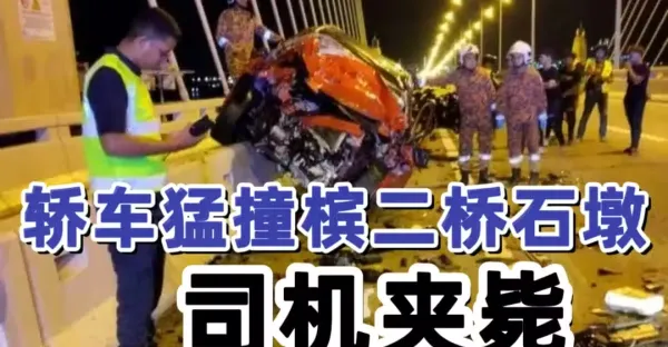 轎車失控撞檳二橋石墩 司機當場夾斃