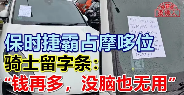保時捷霸占摩哆位 騎士留字條:「錢再多,沒腦也無用」