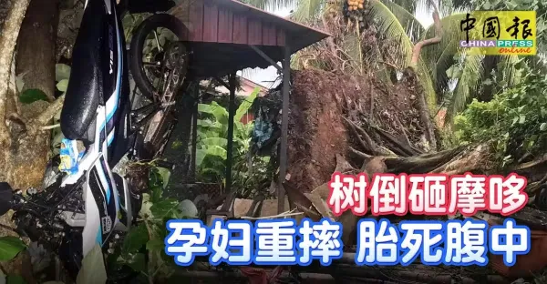樹倒砸摩哆 孕婦重摔 胎死腹中