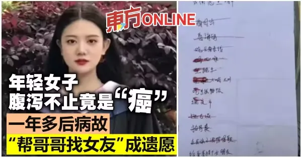 年輕女子腹瀉不止竟是「癌」 一年多後病故「幫哥哥找女友」成遺願