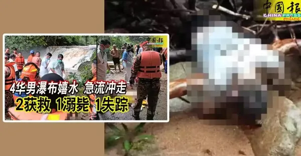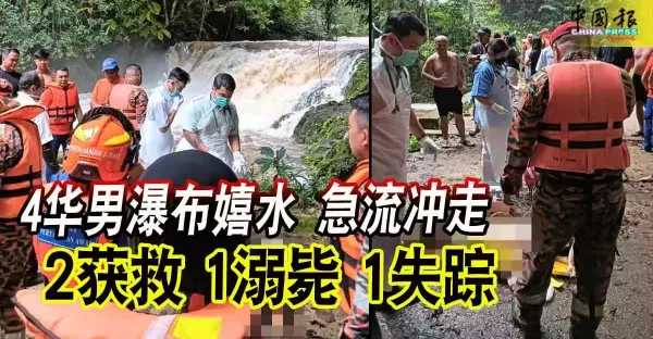4華男瀑布嬉水 急流沖走 2獲救 1溺斃 1失蹤