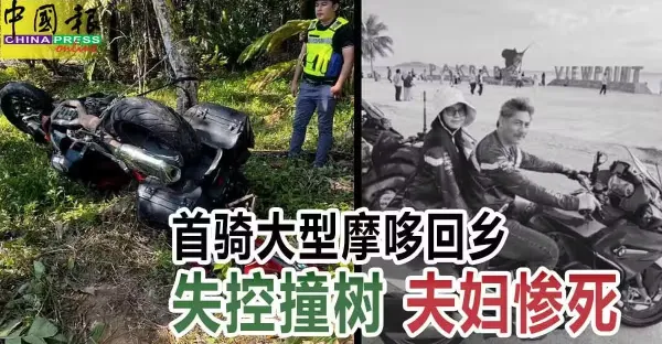 首騎大型摩哆回鄉 失控撞樹 夫婦慘死