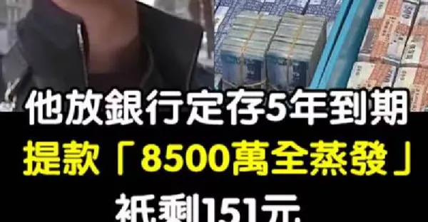 他放錢在銀行定存五年!!到期提款「8500萬全蒸發」只剩151元 一調「交易紀錄」傻住:不敢提告了
