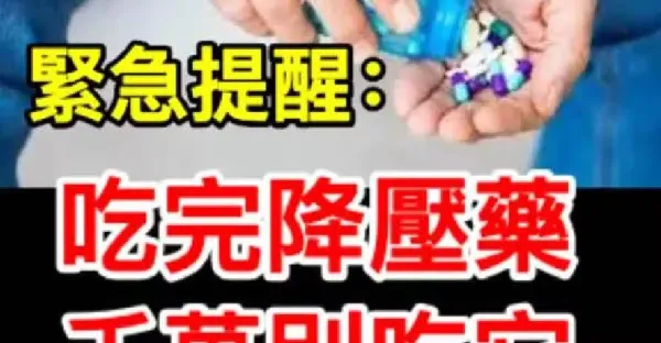 緊急提醒:吃完降壓藥千萬別吃它,否則等於白吃,趕快告訴身邊人