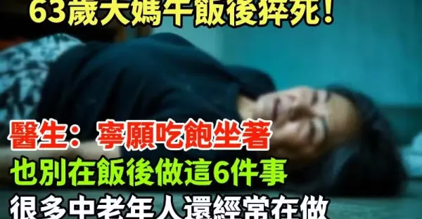 63歲大媽午飯後猝死!醫生:寧願吃飽坐著 也別在飯後做這6件事