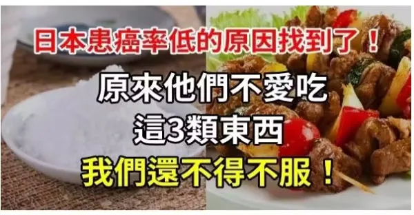 日本患癌率低的原因找到了!原來他們不愛吃「3類東西」,我們不得不服啊!