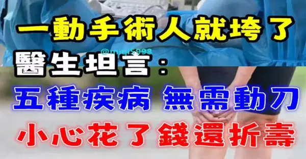 一動手術人就垮了?醫生坦言:「五種疾病」無需動刀 小心花了錢還折壽