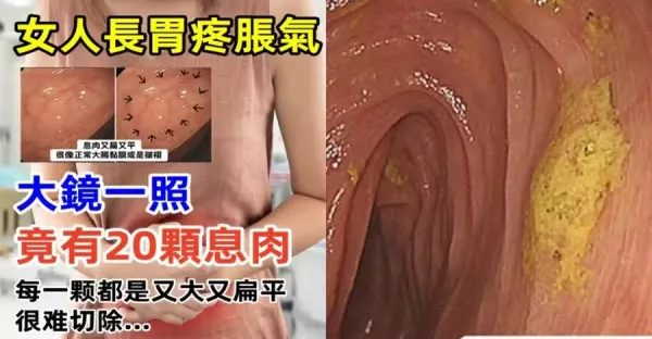 女子常胃痛脹氣 大腸鏡一照 竟有20顆息肉!