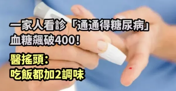 一家人看診「通通得糖尿病」 血糖飆破400!醫搖頭:吃飯都加2調味.