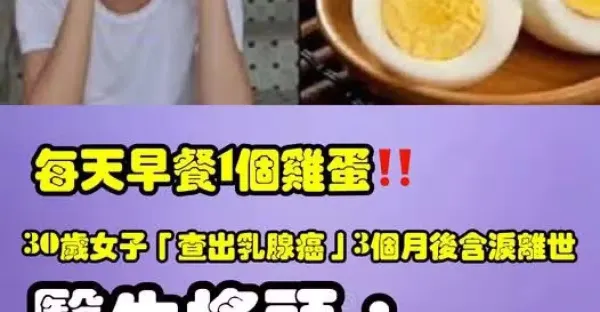每天早餐1個雞蛋!30歲女子「查出乳腺癌」3個月後含淚離世 醫生搖頭:一動作害了她!