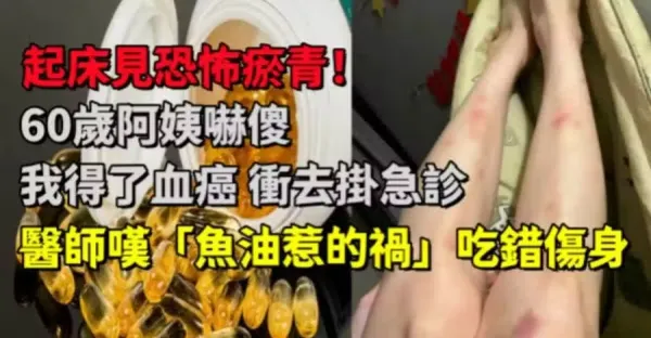 起床驚見恐怖瘀青!60歲阿姨嚇傻「我得了血癌」衝去掛急診 醫師嘆「魚油惹的禍」吃錯傷身!!