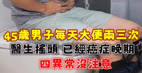 才45歲!他每天「大便兩三次」以為消化好,醫生搖頭「已經癌症晚期」四異常沒注意
