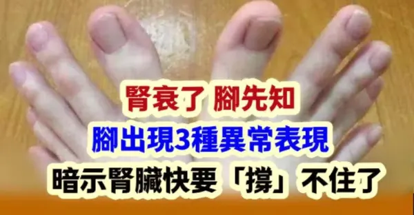 腎衰了,腳先知!腳出現3種異常表現,暗示腎臟快要「 撐 」不住了~