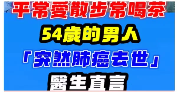 平常愛散步常喝茶!54歲男「突然肺癌去世」,醫生直言:這三物非常傷肺,最好別碰