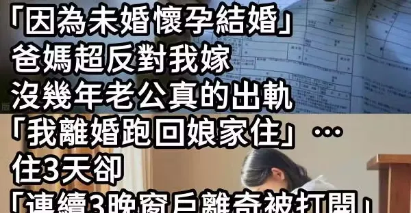 我當年「因為未婚懷孕結婚」爸媽超反對我嫁!沒幾年老公真的出軌「我失婚跑回娘家住」…住3天卻「連續3晚窗戶離奇被打開」!第4晚我裝睡著「半夜偷偷張開眼睛」一看崩潰了~