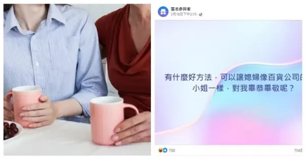 一位婆婆提問:「有什麼好方法,可以讓媳婦像百貨公司的專櫃小姐,對我畢恭畢敬呢?」😮😮 #網友狂推1招 #詳情見留言