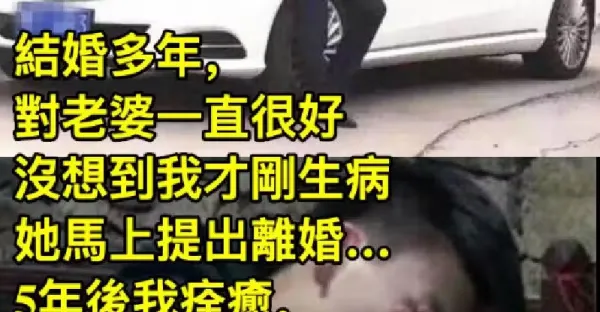 結婚多年,對老婆一直很好,沒想到我才剛生病,她馬上提出失婚…5年後我痊癒,又做生意賺錢「故意開跑車去前妻家」,無意聽見「鄰居阿嬤的話」痛哭後悔…