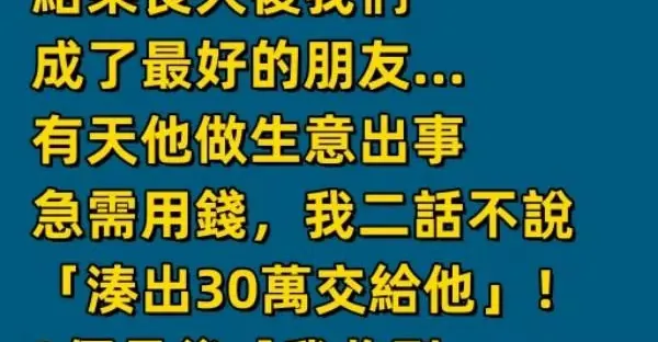 我家很窮,家境優渥的同學從小一直幫助我!結果長大後我們成了最好的朋友…有天他做生意出事急需用錢,我二話不說「湊出30萬交給他」!3個月後「我收到一則轉賬紀錄」一看傻在原地~
