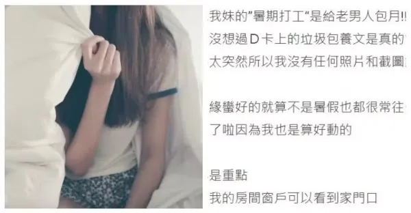 最近妹妹說有打工,也開始會請家人吃飯,買名牌包、拿高貴手機,我覺得奇怪逼問,才知道所謂的打工竟是「被老男人每月10萬包養」...我該怎麼辦?