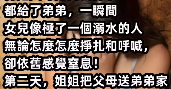 姐姐養老10年,得知父母把兩套房子都給了弟弟,一瞬間女兒像極了一個溺水的人,無論怎麼怎麼掙扎和呼喊,卻依舊感覺窒息!第二天,姐姐把父母送弟弟家,交代弟弟:輪到你養老了 。然後頭也不回的走了!