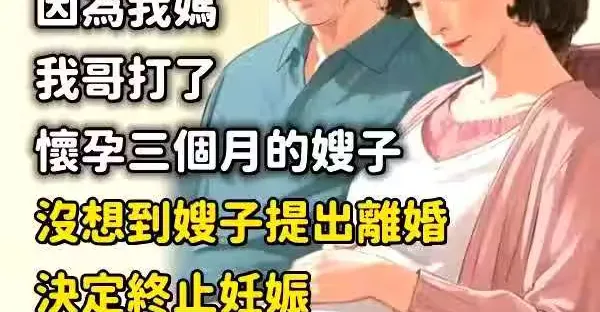 因為我媽,我哥打了懷孕三個月的嫂子。沒想到嫂子提出離婚,決定終止妊娠,我媽在一旁嚇得不知所措!