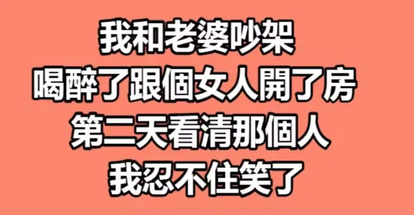 我和老婆吵架,喝醉了跟個女人開了房,第二天看清那個人,我忍不住笑了……