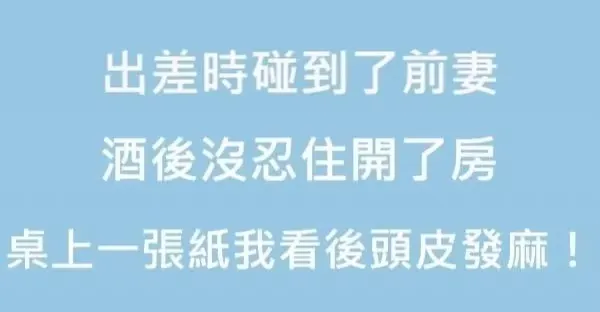 出差時碰到了前妻,酒後沒忍住開了房「隔天桌上有一張紙,我看了以後頭皮發麻」