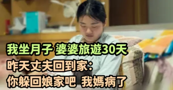 我坐月子婆婆旅遊30天,昨天丈夫回到家:你躲回娘家吧,我媽病了...