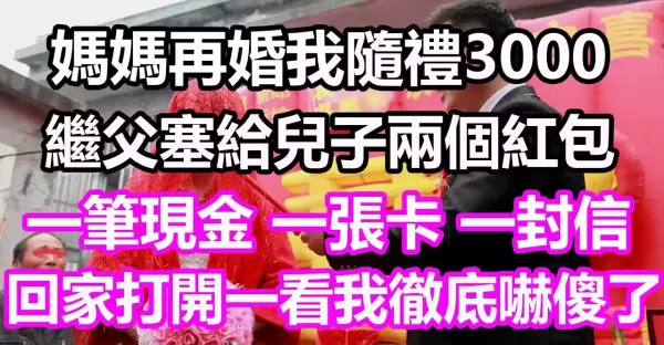 媽媽再婚我隨禮3000,繼父塞給兒子兩個紅包,一筆現金一張卡一封信,回家打開一看我徹底嚇傻了