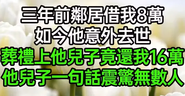 3年前鄰居借我8萬,如今他意外去世,葬禮上他兒子竟還我16萬,他兒子一句話震驚無數人
