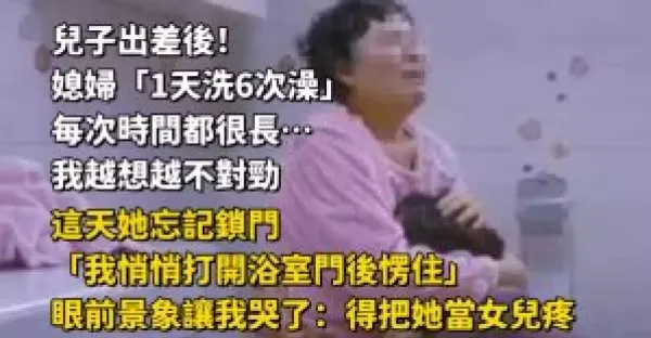 兒子出差後!媳婦「1天洗6次澡」每次時間都很長… 我越想越不對勁,這天她忘記鎖門「我悄悄打開浴室門後愣住」眼前景象讓我哭了:得把她當女兒疼