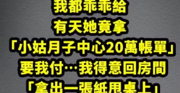我收入比老公高2倍多!婆婆一天到晚找我要錢我都乖乖給,有天她竟拿「小姑月子中心20萬帳單」要我付…我得意回房間「拿出一張紙甩桌上...」:您滿意了嗎?婆婆嚇到說不出話