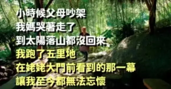 小時候父母吵架,我媽哭著走了,到太陽落山都沒回來,我跑了五里地,在姥姥大門前看到的那一幕,讓我至今都無法忘懷...