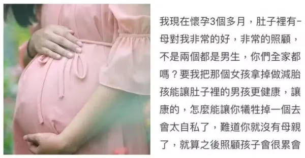 養女生浪費錢!她懷龍鳳胎「被未來婆家逼墮胎」只要留男生 「霸氣一舉動」網喊:實在太帥了