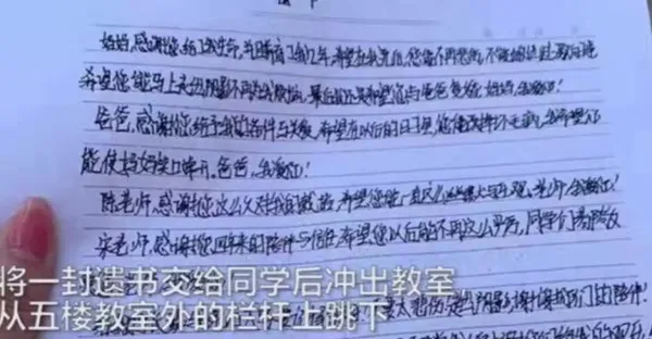 衝出教室一躍而下!12歲女童「絕望輕生身亡」 生前「寫遺書交給同學」:希望你與爸爸復婚...