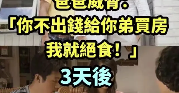 女兒很爭氣很會賺錢! 爸爸威脅:「你不出錢給你弟買房,我就絕食!」 3天後「來到女兒家...」一開門全家崩潰