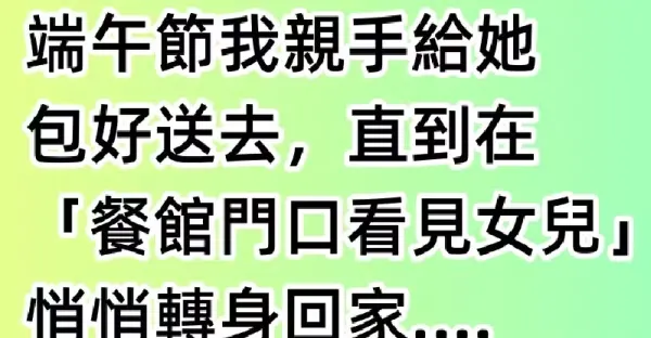我今年69歲,女兒從小就喜歡吃粽子,端午節我親手給她包好送去,直到在「餐館門口看見女兒」悄悄轉身回家....所謂的父女親情都是假的!!