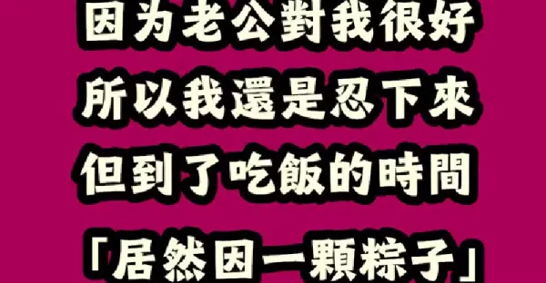 端午連假原本想出去玩「卻硬是被叫回婆家」 因為老公對我很好所以我還是忍下來...但到了吃飯時間「因為一顆粽子」我氣炸和婆婆槓上 #是我太掃興嗎