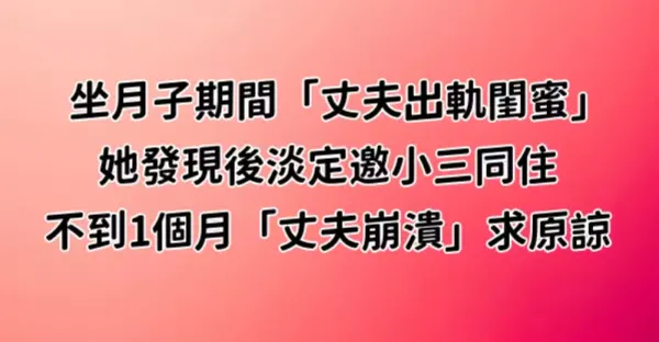 坐月子期間「丈夫出.軌閨蜜」!她發現後淡定邀小三同住 不到1個月「丈夫崩潰」求原諒