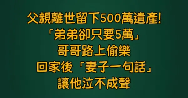 父親離世留下500萬遺產!「弟弟卻只要5萬...」哥哥路上偷樂 回家後「妻子一句話」讓他泣不成聲