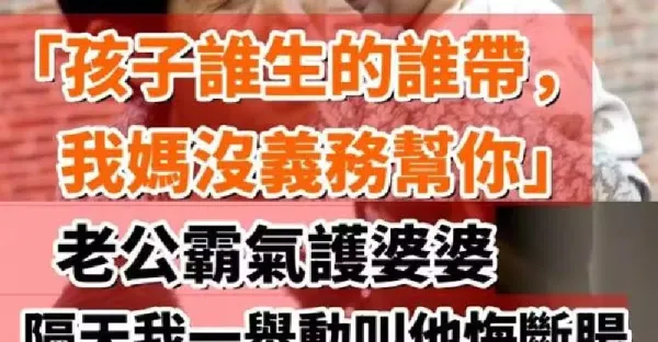 「孩子誰生的誰帶,我媽沒義務幫你」,老公霸氣護婆婆,隔天我一舉動叫他跪著哭