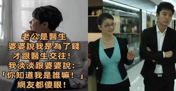 老公是醫生,婆婆說我是為了錢才跟醫生交往!我淡淡跟婆婆說:「你知道我是誰嘛!」網友都傻眼!